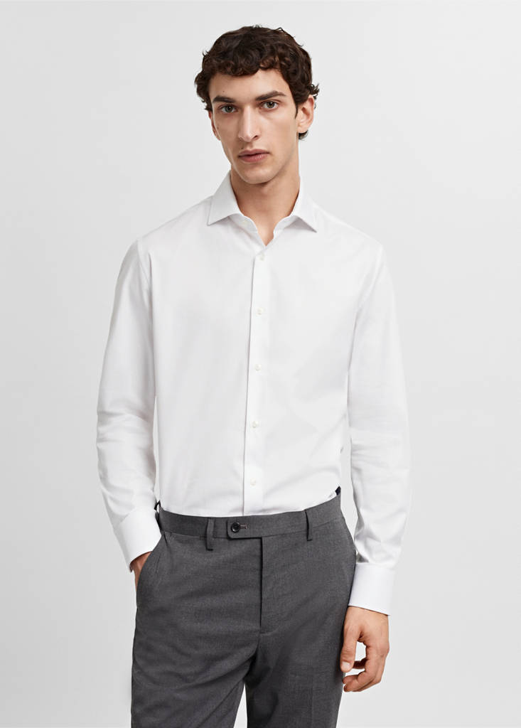 100 % Baumwolle. Strukturierte Baumwolle. Slim Fit. Haifischkragen. Lange Ärmel mit Knopfmanschetten. Knopfverschluss. Klassischer Kragen. Vorderer Verschluss mit Knöpfen