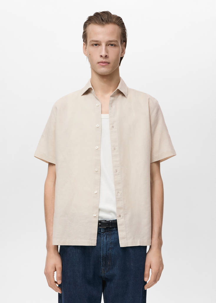 Regular Fit. Leinen-Mix. Hemdkragen. Vorderer Verschluss mit Knöpfen. Kurzarm. Gerader Saum