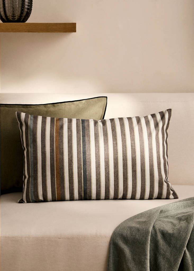 Größe: 40x60cm. Baumwollstoff mit Canvas-Struktur. Dieser Kissenbezug ist gestreift und ohne sichtbare Nähte gefertigt, wodurch er besonders weich ist. Er verfügt außerdem über einen unsichtbaren Reißverschluss und ist strapazierfähiger, da er sich an den Nähten nicht abnutzt. In verschiedenen Farben erhältlich