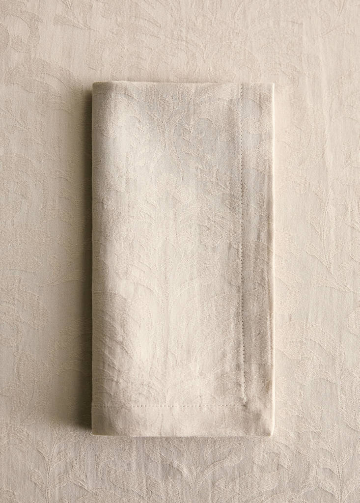 4er-Pack. 100 % Baumwolle. Größe: 45x45 cm. Geblümtes Jacquard-Gewebe. Dekorieren Sie Ihren Tisch mit einem besonderen Touch. Passt zu weiteren Produkten der Kollektion