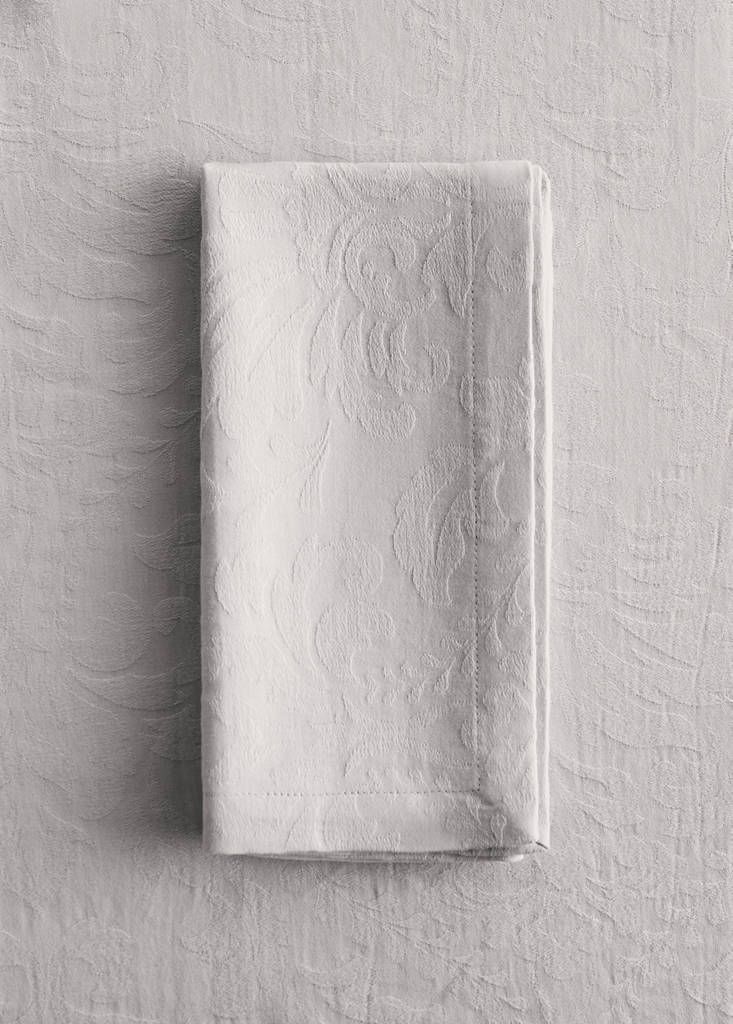 4er-Pack. 100 % Baumwolle. Größe: 45x45 cm. Geblümtes Jacquard-Gewebe. Dekorieren Sie Ihren Tisch mit einem besonderen Touch. Passt zu weiteren Produkten der Kollektion