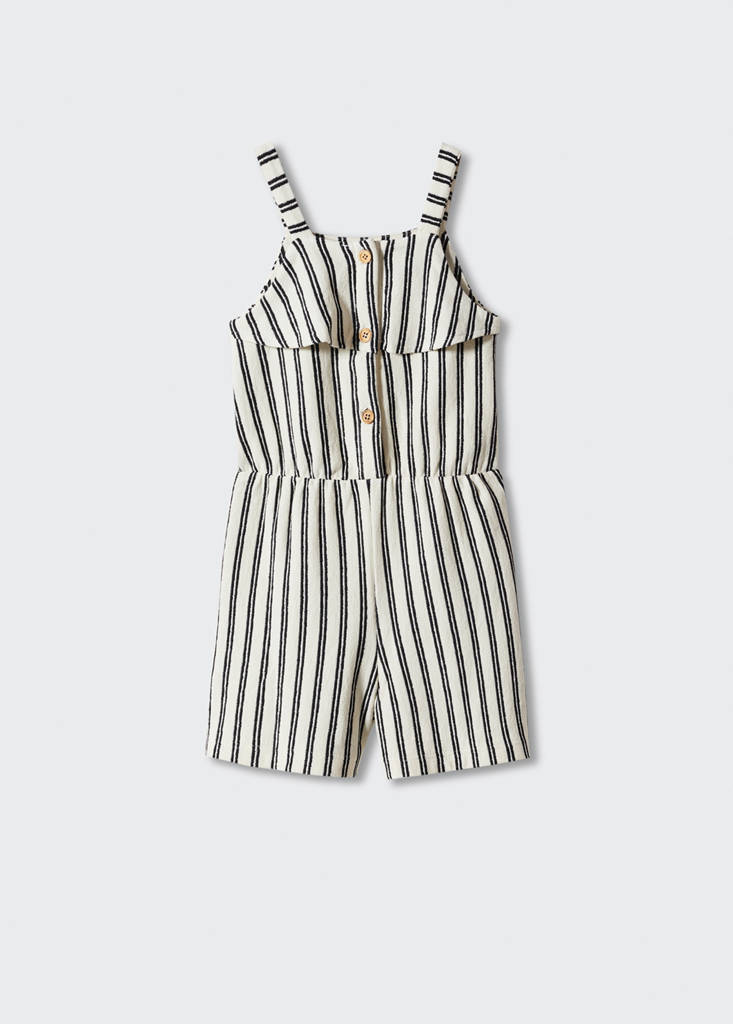 100 % Baumwolle. Streifenmuster. Kurzes Design. Breite Träger. Ärmellos. Knopfverschluss hinten