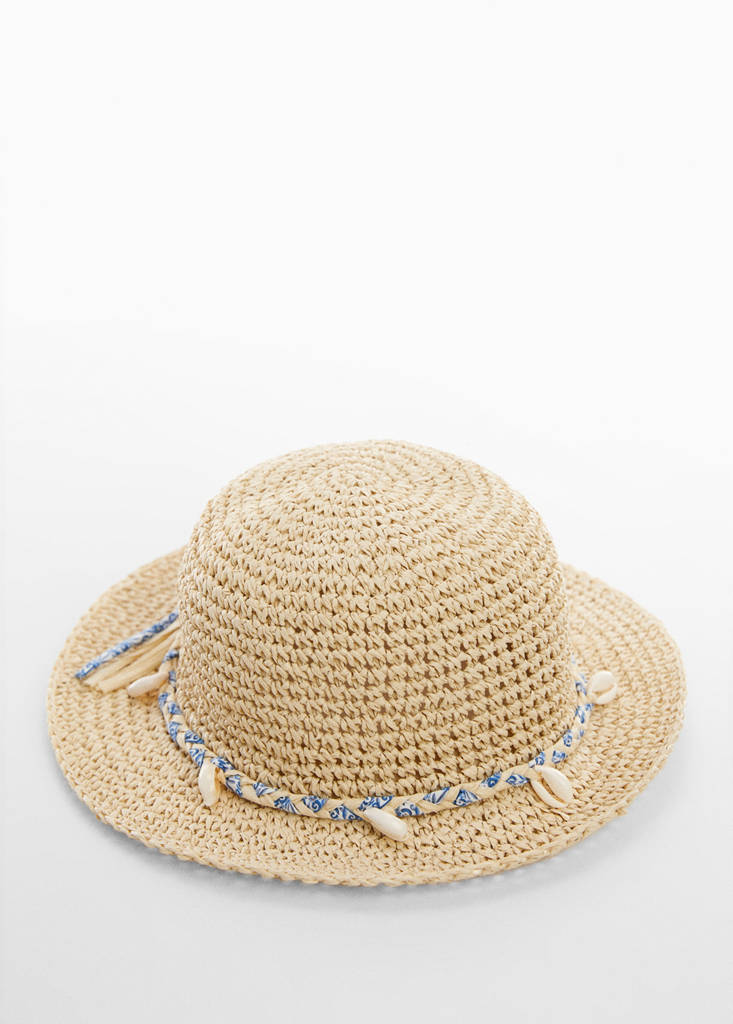 Kollektion für Partys, Feierlichkeiten und Kommunionen. Stroh. Rundes Design. Muschel-Verzierung