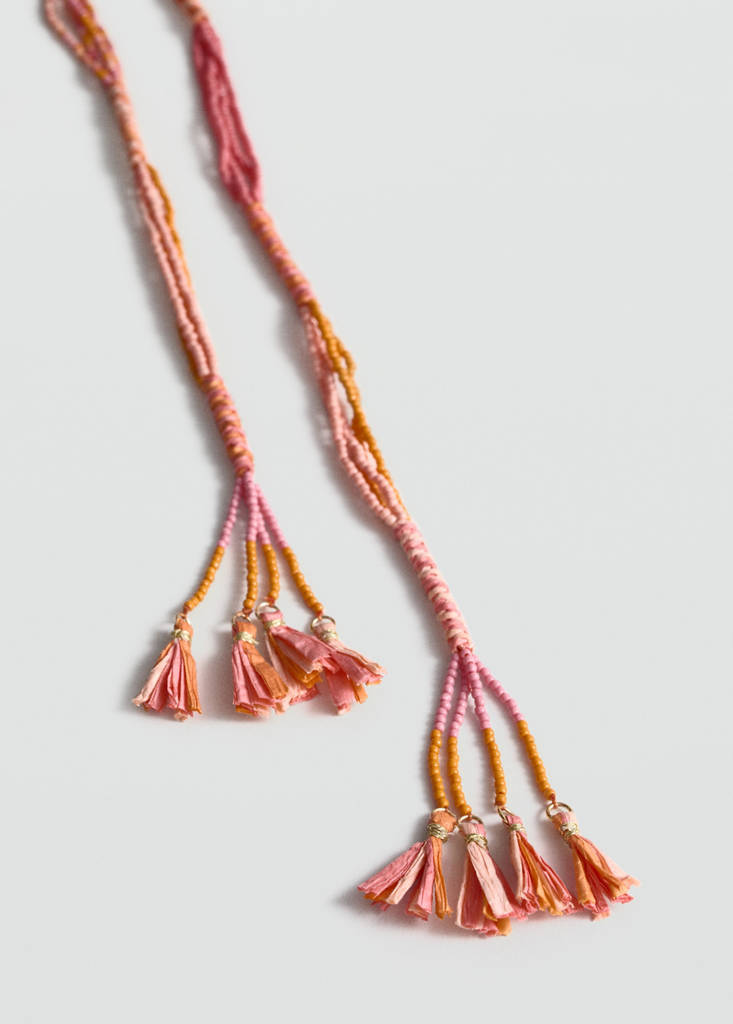 Limited Edition. Doppeltes Schlaufendessin. Kristallperle. Fransenverzierung. Das Bild des Models wird mit künstlicher Intelligenz erzeugt