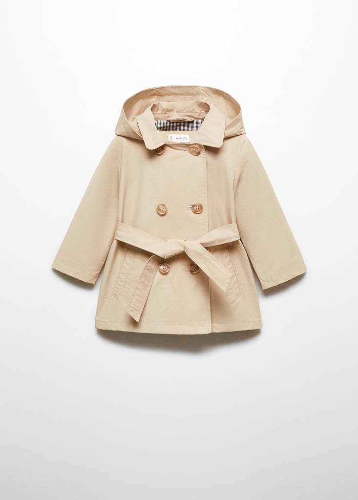 Tissu en coton. Coupe droite. Design long. Double boutonnage. Intérieur imprimé. Capuche. Manche longue. Ruban à la taille avec fermeture à nœud. Fermeture avant