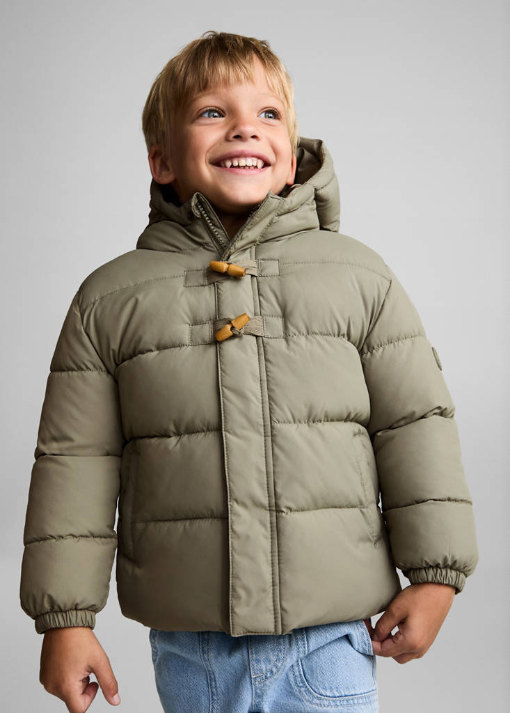 Design matelassé. Design droit. Manche longue. Capuche. Étiquette pour données personnelles. Deux poches. Fermeture Éclair dissimulée. Fermeture à deux boutons. Anorak matelassé moutonné