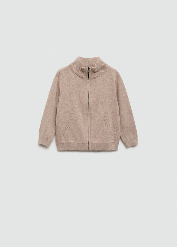 Tissu en coton mélangé. Coupe droite. Col Perkins. Manche longue. Deux poches latérales. Fermeture Éclair à l’avant