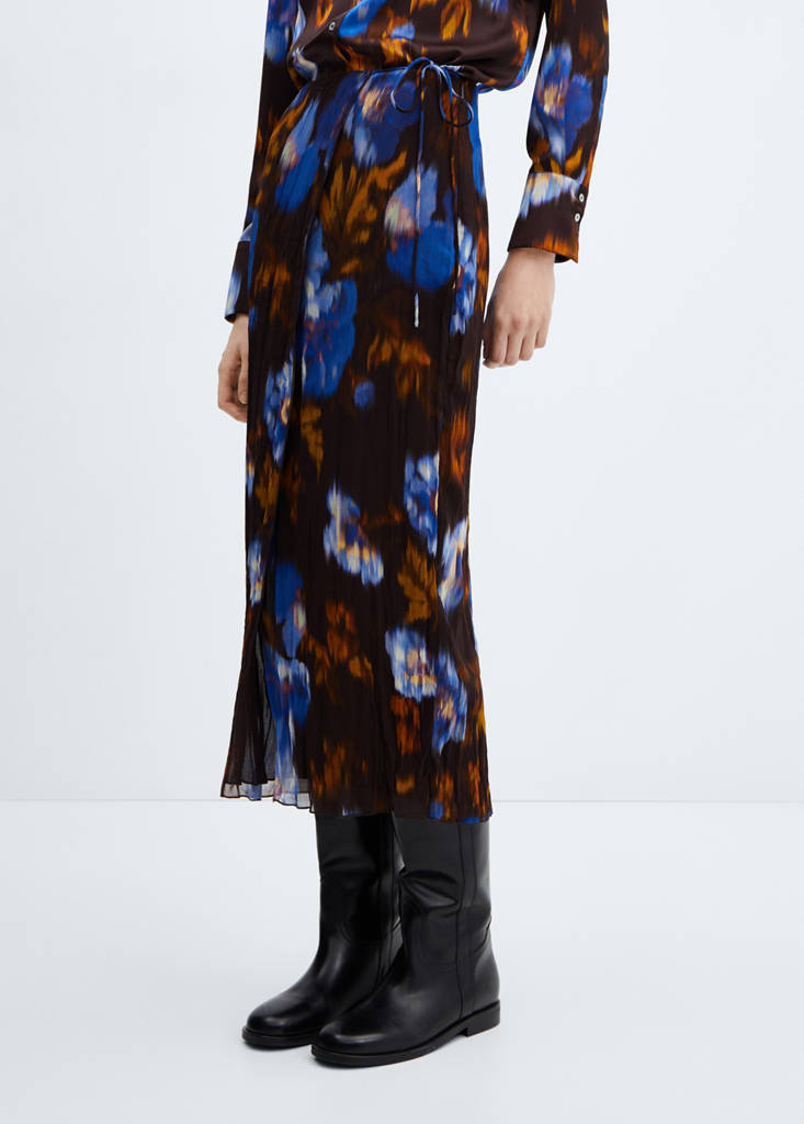 Tissu fluide. Coupe midi. Coupe croisée. Fermeture à nœud. Doublure. Total look. Motif imprimé