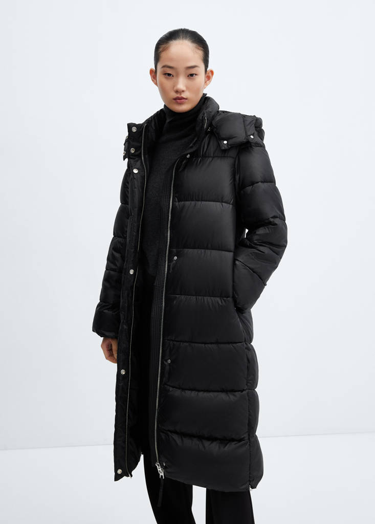 Design long. Design matelassé. Avec capuche. Manche longue. Deux poches latérales. Fermeture Éclair avec boutons. Bas zippé. Doublure. Hydrofuge : La finition résistante de ce vêtement protège contre les pluies légères, repoussant le contact avec l'eau et les gouttes de pluie