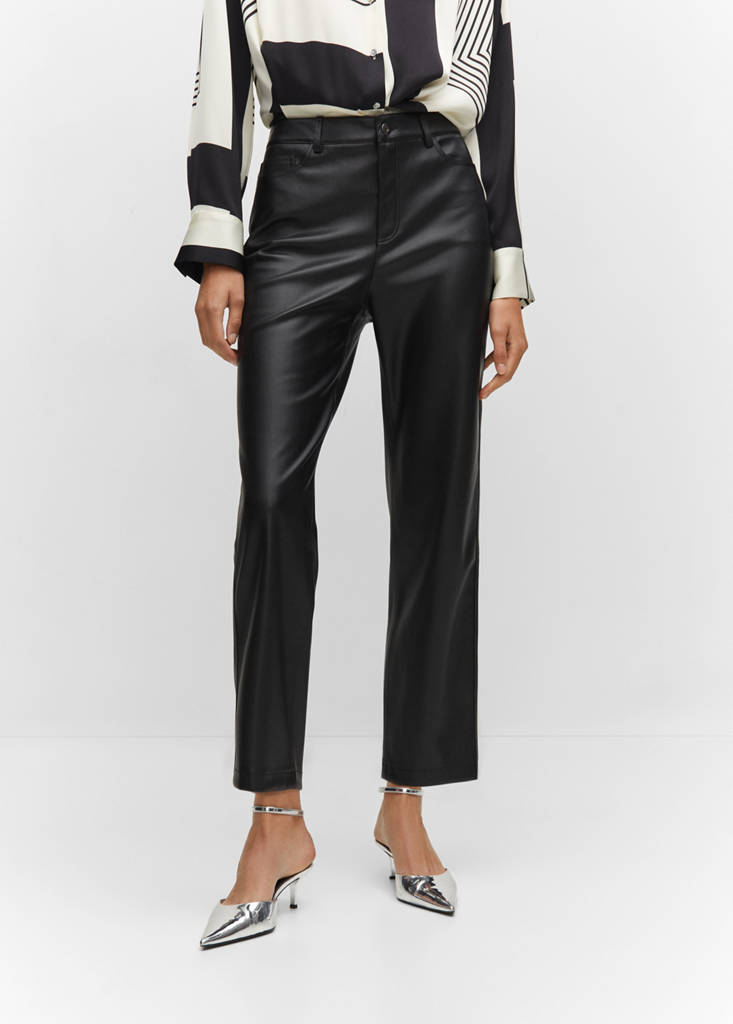 Effet cuir. Design droit. Design long. Taille mi-haute. Passants de ceinture. Cinq poches. Fermeture éclair et bouton. La couleur écrue est une exclusivité en ligne. Disponible en grande taille. Looks de bureau. Design crop. Coutures décoratives