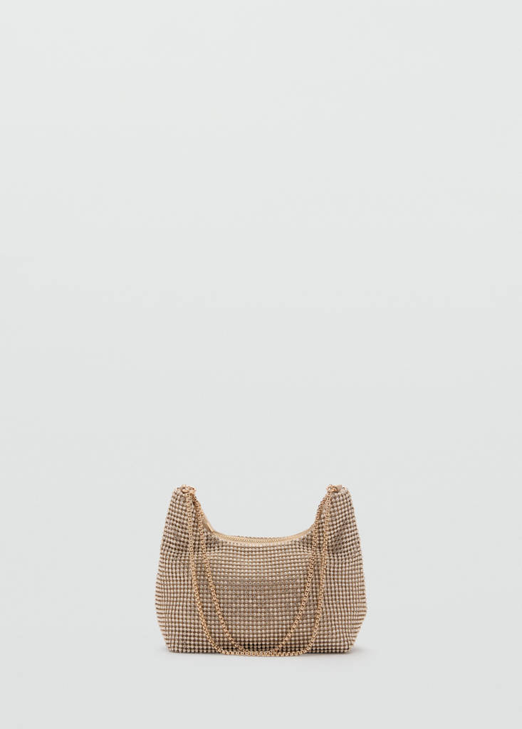 Petite taille. Taille moyenne. Double anse. Anse d'épaule. Poche intérieure. Fermeture à zip. Ornement de cristaux. Doublure intérieure. Cristaux à facettes. Anse en chaîne. Collection fêtes, cérémonie et communion