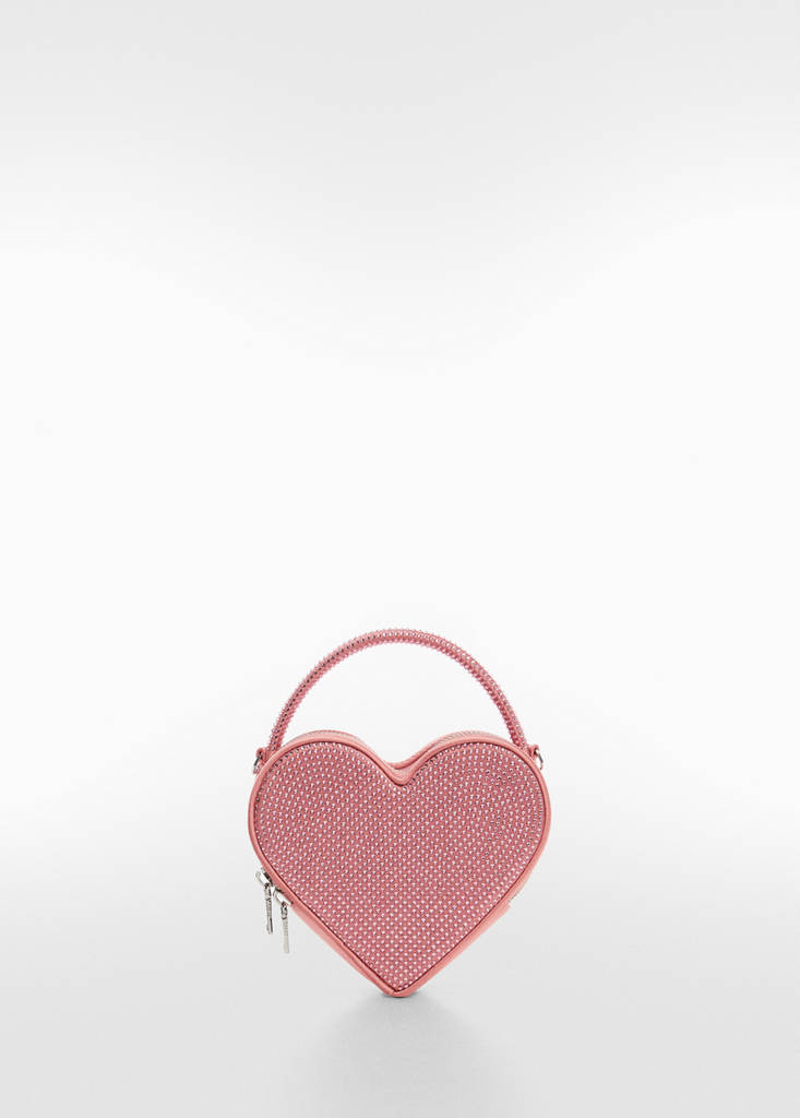 Collection Saint-Valentin. Format petit. Motif cœur. Anse courte. Anse longue en chaîne. Bandoulière amovible. Fermeture Éclair. Ornement de cristaux. Doublure. Collection fêtes, cérémonie et communion