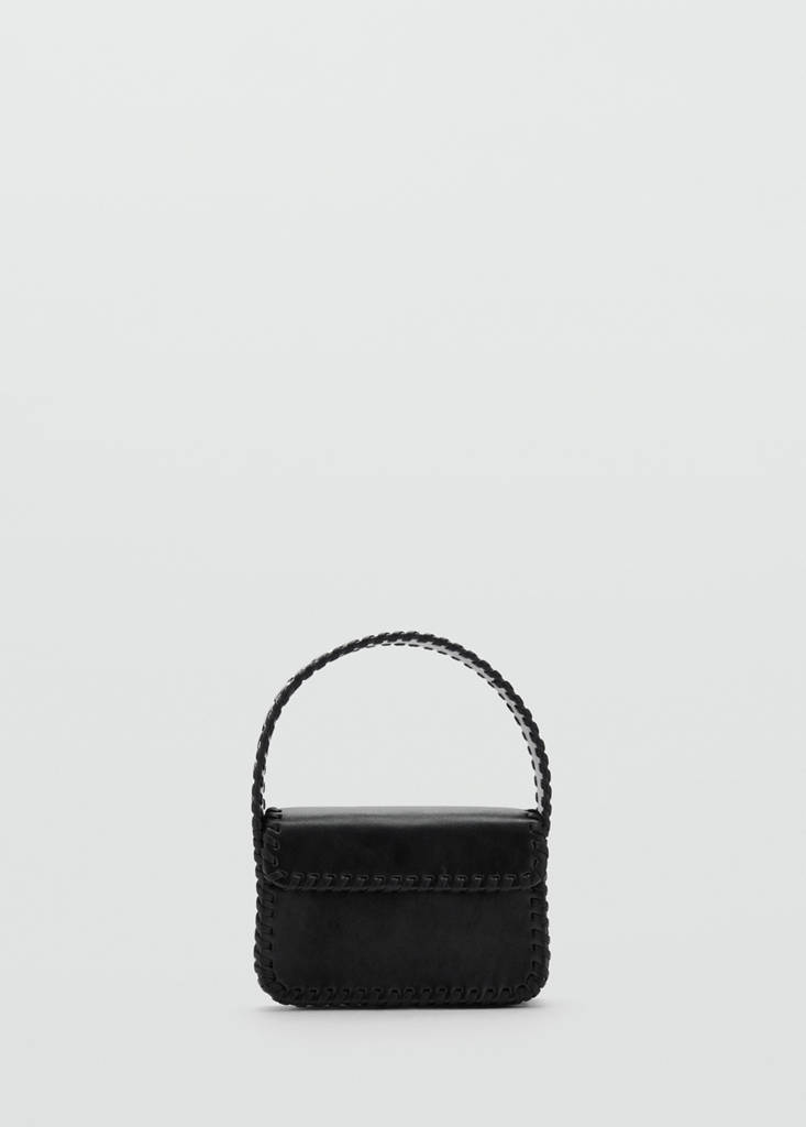 Format petit. Anse courte. Poignée à main. Fermeture à rabat avec bouton magnétique. Clous décoratifs. Doublure
