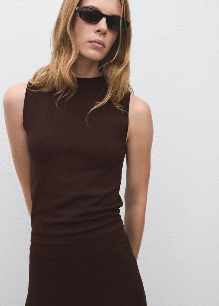Confectionné en maille fine, ce modèle droit présente un col rond et des bretelles larges. À assortir à un pantalon pour un total look coordonné. Disponible en grande taille