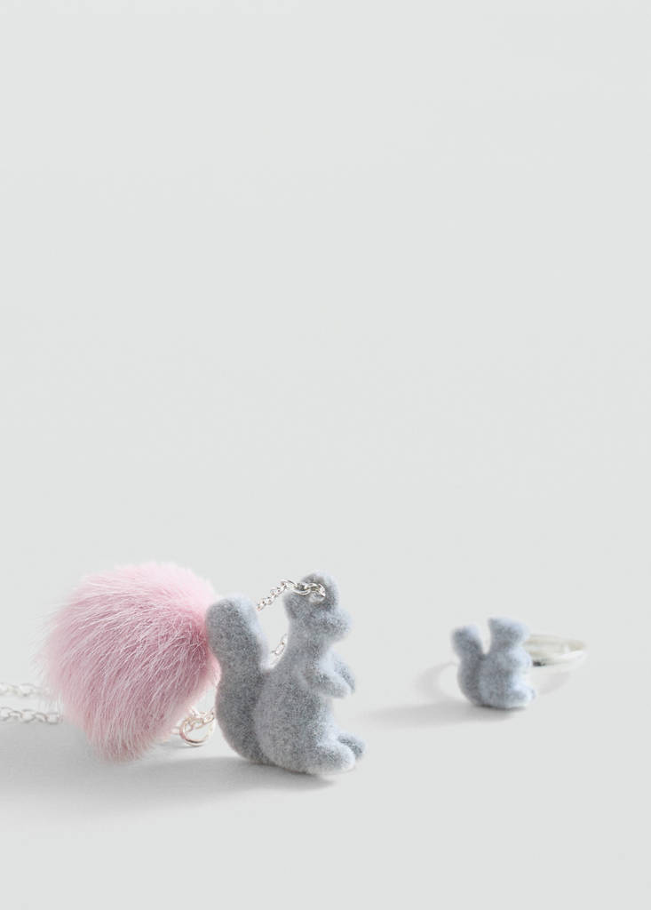 Pack de 2. Détail de peluche. Fermoir à chaînette et mousqueton. Motif écureuil