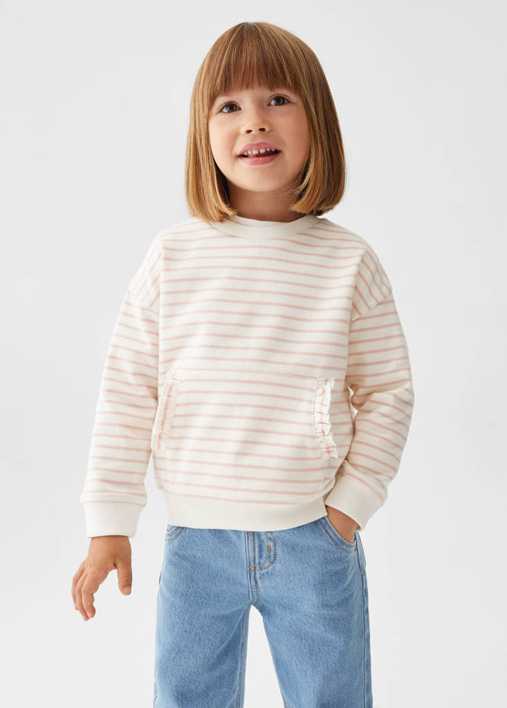 Collection Essentiels. 100% coton. Motif à rayures. Coupe regular. Poche kangourou. Col rond. Manche longue. Sans fermeture