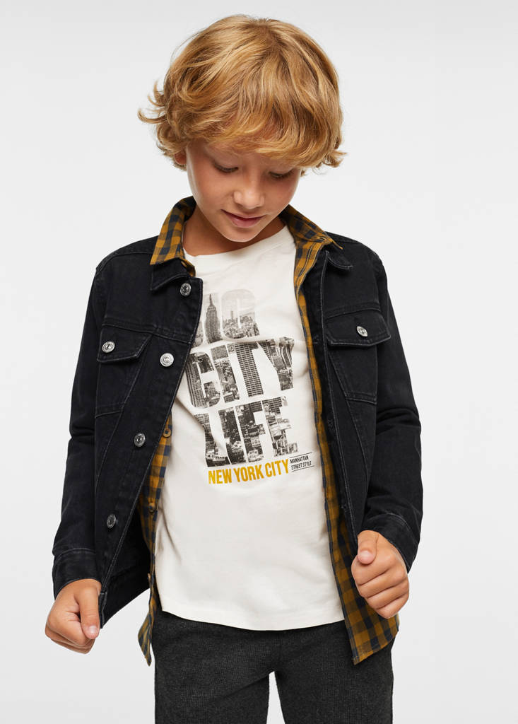 Tissu en coton de style jean. Longueur normale. Droit. Col classique. Manches longues avec poignets boutonnés. Deux poches plaquées avec bouton à l’avant. Deux poches latérales. Fermeture boutonnée sur le devant