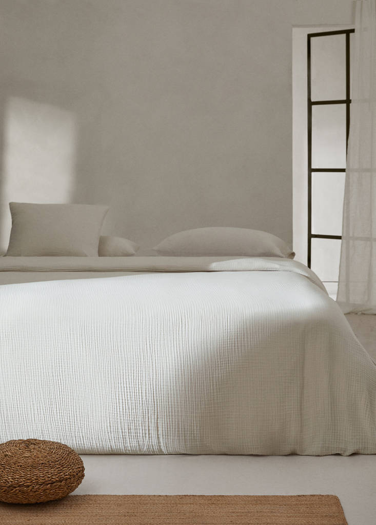 Taille : 150x220cm. Lit de 90 cm. 100 % coton. 250 fils. Style méditerranéen. Tissu en mousseline. Combinez-le avec les taies d'oreiller et les housses de coussin de la même collection pour une chambre en parfaite harmonie. Fermeture à boutons. Ne comprend pas le rembourrage