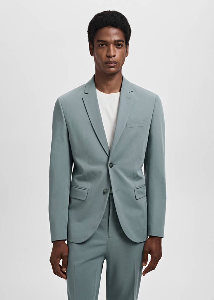 Revers crantés à boutonnière. Fermeture avant avec boutons. Une poche passepoilée sur la poitrine. Deux poches à rabat à l’avant. Poignets à patte boutonnée. Hem with two side slits. Poche intérieure. Doublure intérieure