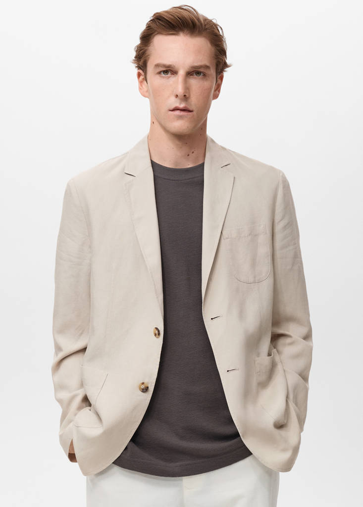 Tissu de lin et Lyocell mélangés. Slim fit. Col à revers crantés. Fermeture avant avec boutons. Petite poche plaquée sur la poitrine. Deux poches plaquées latérales. Collection tailleur
