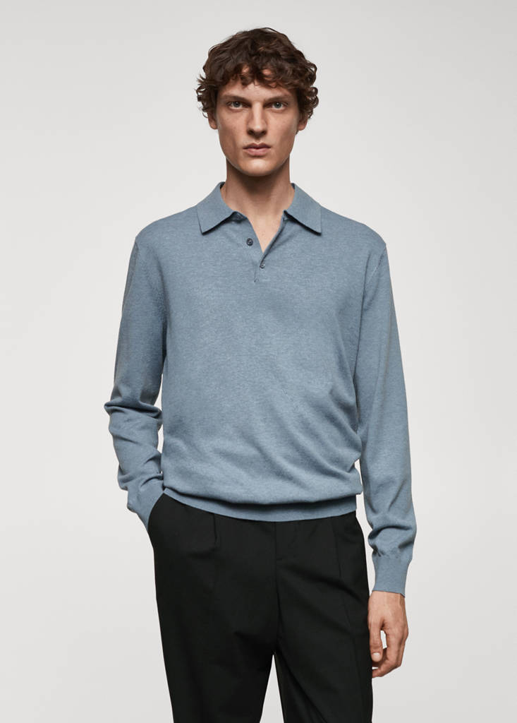 Polo maille coton manches longues