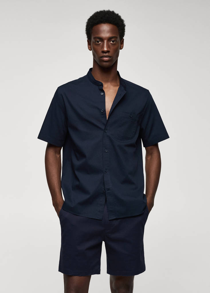 Chemise 100 % coton col maoHistorique des prixPrix initial barré [39,99 € ]39,99 €Deuxième prix barré [30,99 € ]30,99 €Prix actuel [10,99 € ]10,99 €-73 %Choisissez une couleurBleu marineLe mannequin porte la taille M et mesure 189cm.Choisissez votre tailleXSSNon disponible. Je le veux !MNon disponible. Je le veux !LNon disponible. Je le veux !XLNon disponible. Je le veux !MesuresAjouter100 % coton. Coupe regular. Col mao. Poche plaquée à bouton sur la poitrine. Manche courte. Fermeture avant avec boutons. Ourlet arrondiDétails, composition et entretienDisponibilité en boutique