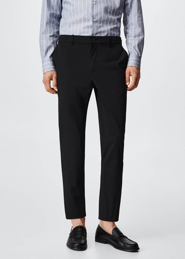 Tapered-fit : coupe large en haut qui se resserre depuis le genou jusqu’à la cheville. Style crop. Tissu stretch. Wrinkle free : tissu infroissable. Passants pour la ceinture. Cordon de serrage à la taille. Deux poches latérales. Deux poches passepoilées à l'arrière. Fermeture Éclair avec bouton. Le mannequin porte une taille 42