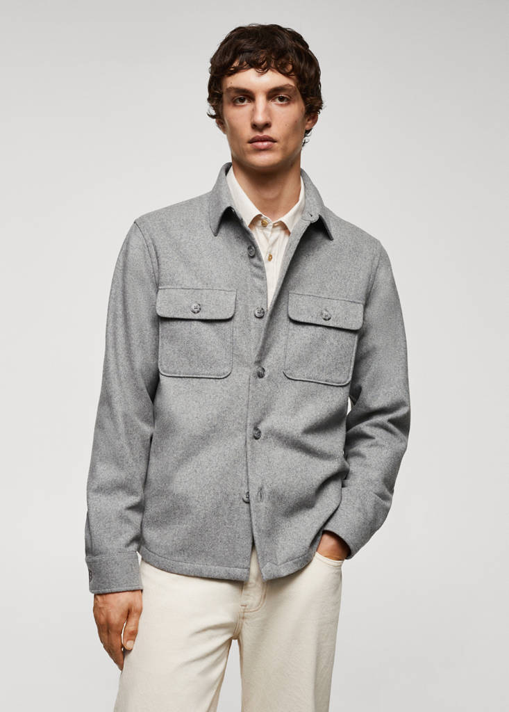 Coupe standard. Coupe regular. Tissu de laine mélangé. Tissu en flanelle. Col chemise. Deux poches à rabat boutonné sur le devant. Manches longues et poignets boutonnés. Ourlet arrondi. Fermeture avant avec boutons