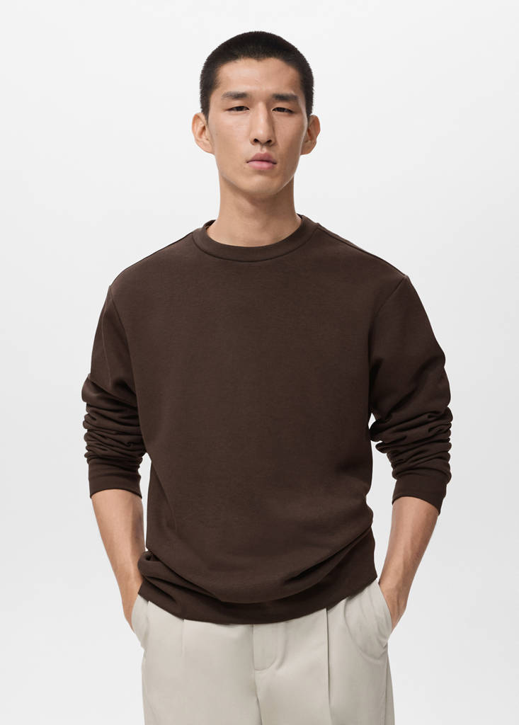 La couleur marron est exclusive en ligne. Tissu en mélange de coton. Coupe regular. Col rond. Manches longues avec poignets élastiques. Col, poignets et ourlet en finition côtelée