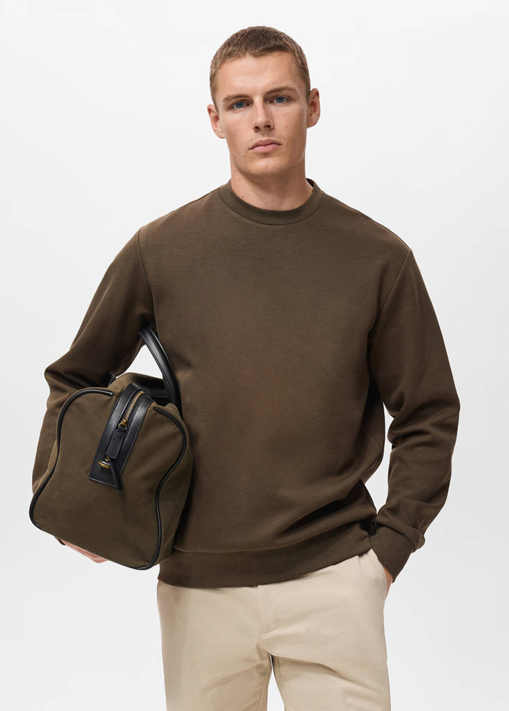 La couleur marron est exclusive en ligne. Tissu en mélange de coton. Coupe regular. Col rond. Manches longues avec poignets élastiques. Col, poignets et ourlet en finition côtelée