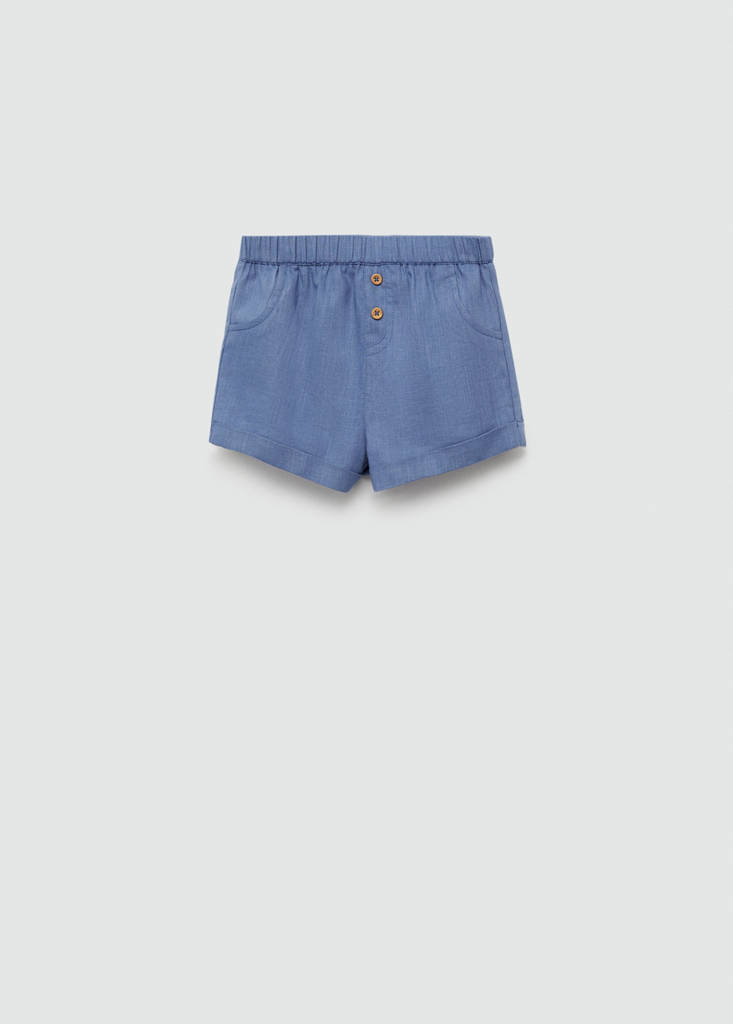 100% coton. Coupe droite. Coupe courte. Taille élastiquée. Boutons décoratifs. Sans fermeture