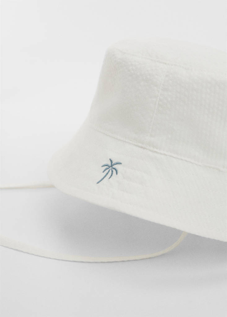 Bucket design. Embroidered detail. Drawstring closure. Summer camp