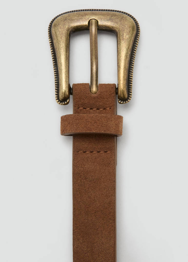 100% bovine leather. Suede. Single loop. Stud detail. Buckle closure
