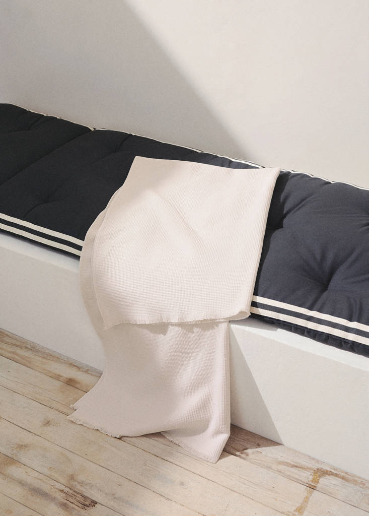 Size: 100x180cm. Waffle structure. Fringed finish. The waffle structure not only adds a touch of unique style to your bathroom, but also offers greater moisture absorption, allowing you to dry quickly and feel fresh and comfortable at all times. High-quality cotton ensures exceptional durability and softness that improves with each use. 100% cotton fabric