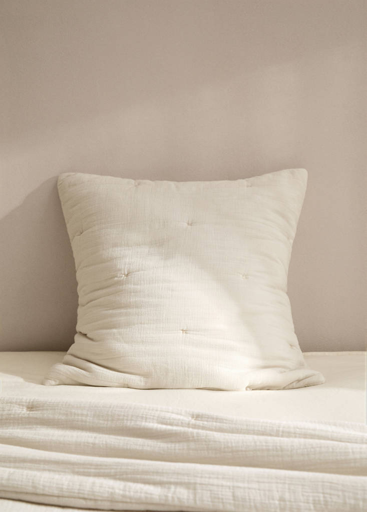 100% Cotton. Size: 60x60cm. Quilted design. Plain fabric. Material with resistance to the passage of time and washing, it combines excellent thermal properties with a high degree of comfort for a healthy rest. Zip fastening. Filling not included