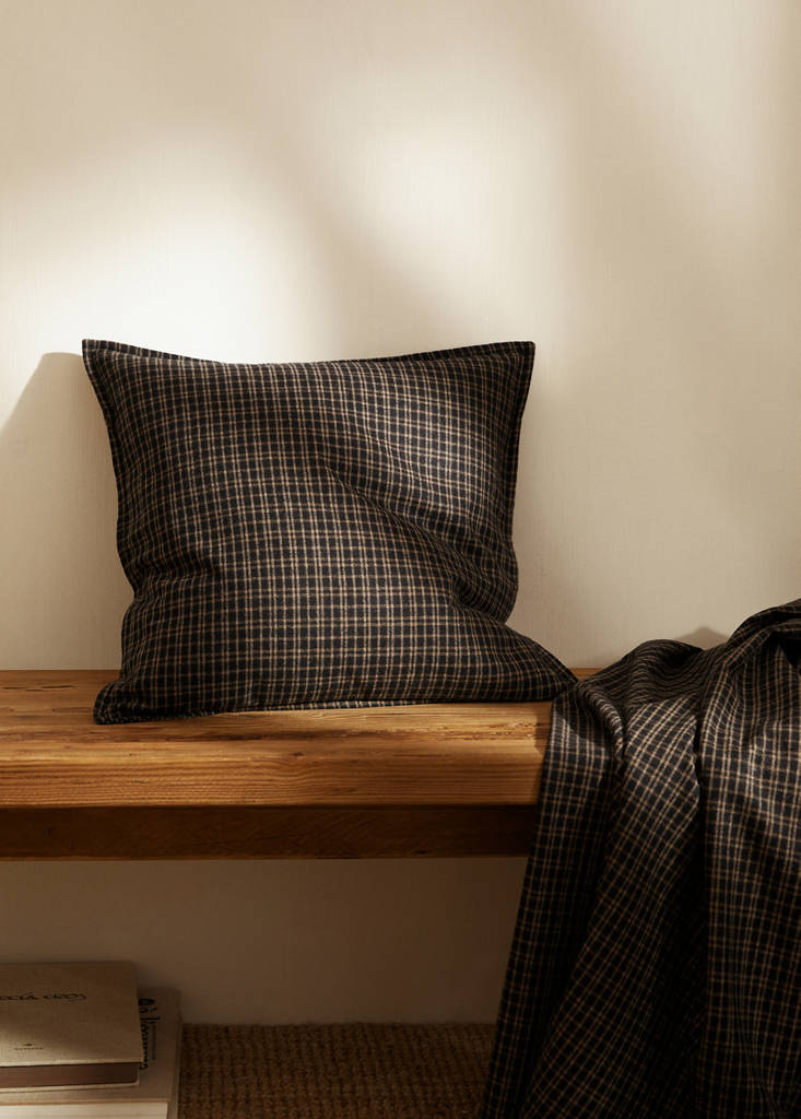 Online Exclusive. Size: 50x50cm. Fabric with wool. Check-pattern. Filling not included. Zip fastening