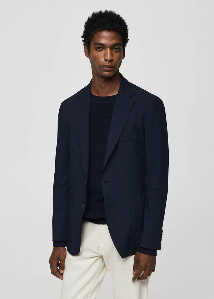ESSENTIALS: Made to last. Slim fit. Notch lapels and buttonhole. Long sleeves with buttoned cuffs. Chest welt pocket. Two patch pockets at the front. Interior pocket. Inner lining. Front closure with buttons
