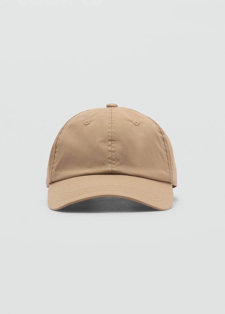 100% cotton fabric. With a visor. Buckle adjustment at the back