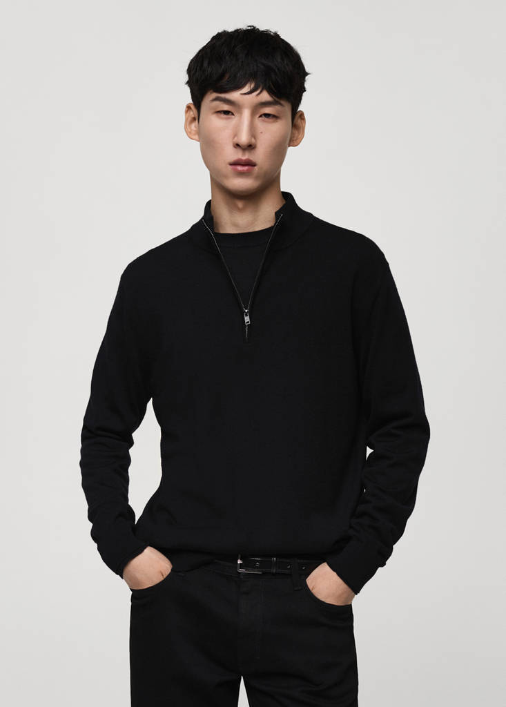 ESSENTIALS: Made to last. Regular fit. 100% merino wool. Perkins collar with zip closure. Long sleeves with elastic cuffs. Medium-knit fabric. Untrimmed hem. The green and camel models are online exclusives