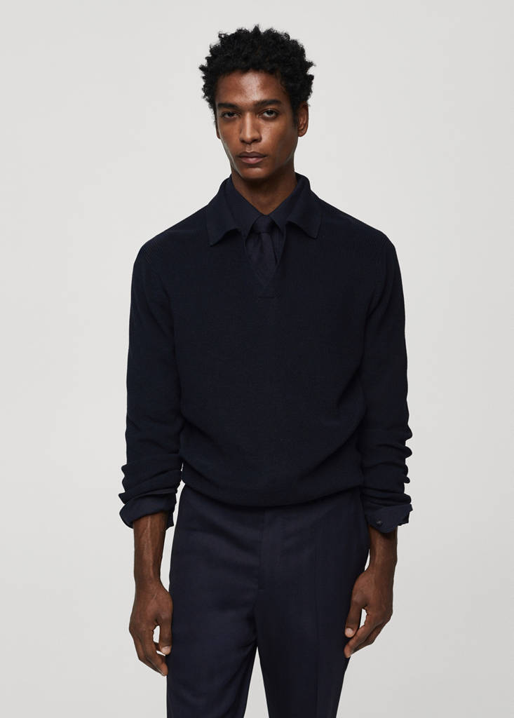 ESSENTIALS: Made to last. Khaki is an online exclusive. Cotton blend fabric. Fine knit fabric. Shirt collar. Long sleeves with elastic cuffs. Straight design. Straight hem with ribbed ends. Elastic hem