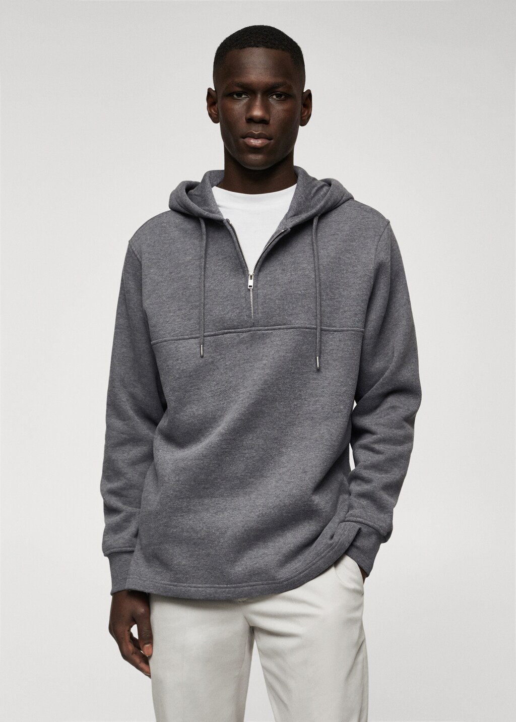 Zipped hoodiePrice historyInitial price struck through [€ 49.99 ]€ 49.99Current price [€ 38.99 ]€ 38.99-22%Select a colourCharcoalSelect your sizeXSNot available. I want it!SNot available. I want it!MNot available. I want it!LNot available. I want it!XLNot available. I want it!XXLNot available. I want it!Size guideNotify meDescriptionRegular fit. Cotton-blend fabric. Hood. Long sleeve. Zip closure at the neck. The model is 187 cm tall and is wearing a size M.See detailsShare