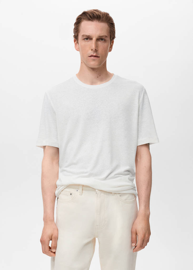 Slim fit. Linen mix. Round neck. Short sleeves. Straight hem. Short sleeves