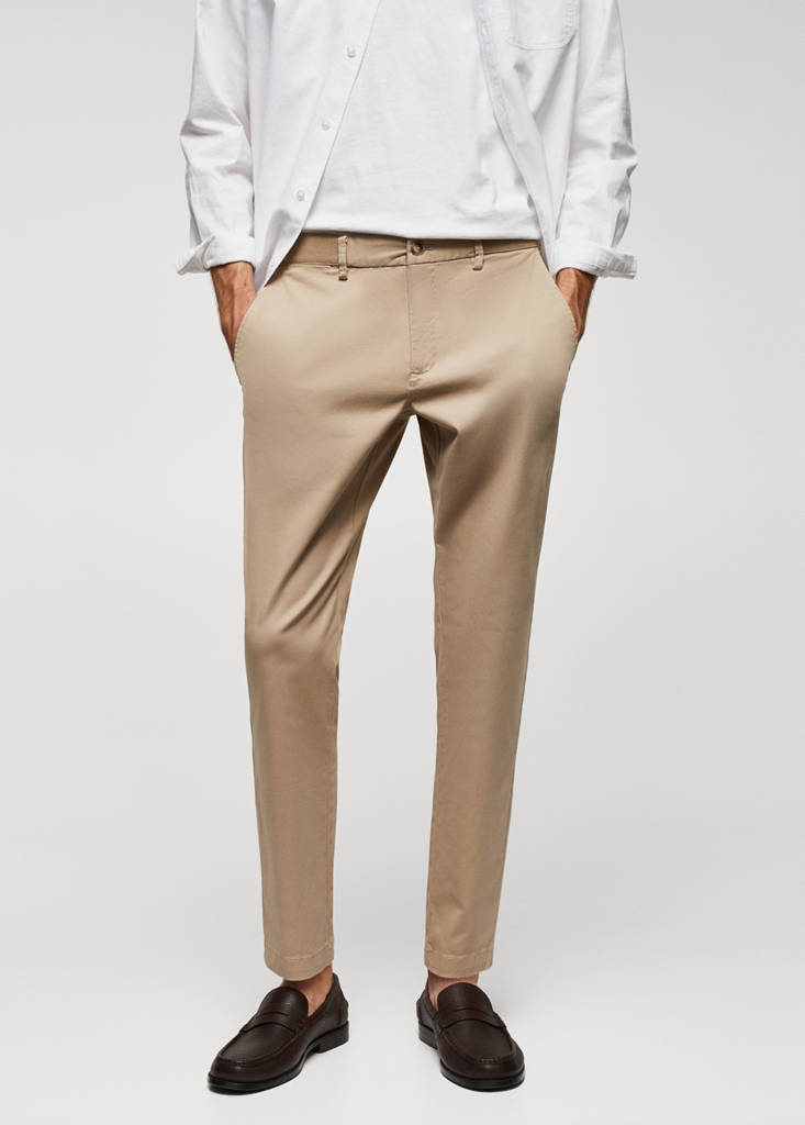 Basics Collection. Tapered fit: wide cut at the top that narrows from the knee to the ankle. Sustainable cotton blend fabric. Belt loops. Zip and button fastening. Belt loops. Soft elastic at front side waistband for added comfort and support the growing bump. Two side pockets. Two pockets with buttoned flaps on the back. The model is wearing a size 42. Lightweight fabric. Chinos style. Cotton and polyester blend fabric. Crop design. Elastic band. Elasticated waistband. Side pockets. Coin pocket. Button and lace closure. Cotton fabric. Waist with adjustable inner cord. Coin pocket at hip height. Two front pockets. Slim fit. Floral print. Button up. Short sleeves. Classic collar