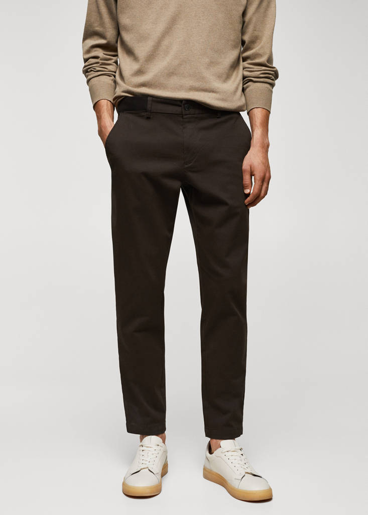 Basics Collection. Tapered fit: wide cut at the top that narrows from the knee to the ankle. Sustainable cotton blend fabric. Belt loops. Zip and button fastening. Belt loops. Soft elastic at front side waistband for added comfort and support the growing bump. Two side pockets. Two pockets with buttoned flaps on the back. The model is wearing a size 42. Lightweight fabric. Chinos style. Cotton and polyester blend fabric. Crop design. Elastic band. Elasticated waistband. Side pockets. Coin pocket. Button and lace closure. Cotton fabric. Waist with adjustable inner cord. Coin pocket at hip height. Two front pockets. Slim fit. Floral print. Button up. Short sleeves. Classic collar