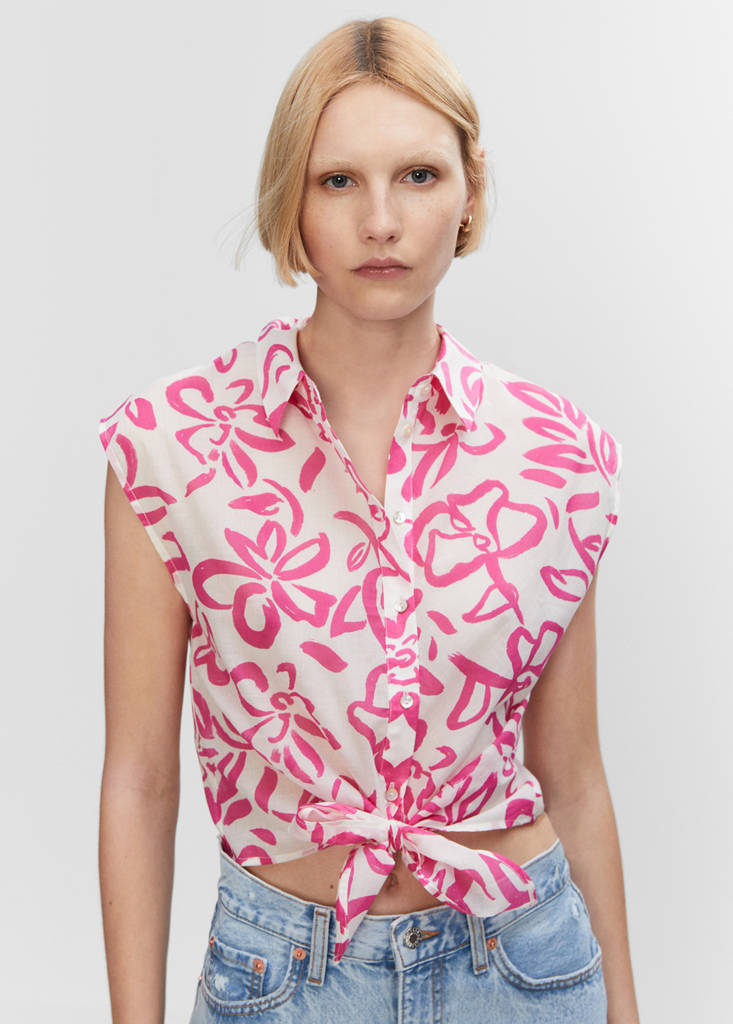 Bow printed shirtPrice historyInitial price struck through [€ 25,99 ]€ 25,99Current price [€ 17,99 ]€ 17,99-31%Select a colourFuchsiaThe model is wearing size S and is 179cm tall.Select your sizeXXSNot available. I want it!XSNot available. I want it!SNot available. I want it!MNot available. I want it!LNot available. I want it!XLNot available. I want it!XXLNot available. I want it!DimensionsNotify meStraight design. Crop design. Shirt collar. Sleeveless. Button fastening at the front. Tie fastening. Printed design. 100% cotton fabricDetails, composition and careStore availability
