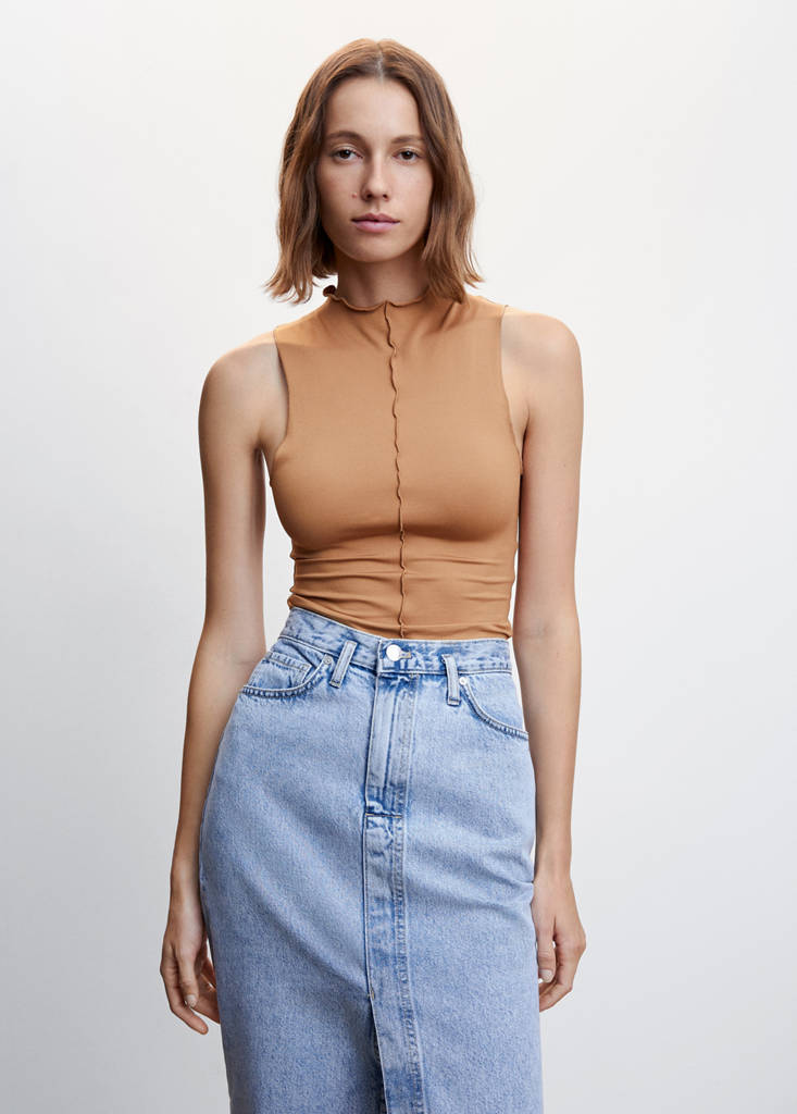 Top seam detailPrice historyInitial price struck through [€ 19.99 ]€ 19.99Current price [€ 12.99 ]€ 12.99-35%Select a colourBrownThe model is wearing size S and is 180cm tall.Select your sizeXXSNot available. I want it!XSNot available. I want it!SNot available. I want it!MNot available. I want it!LNot available. I want it!XLNot available. I want it!XXLNot available. I want it!Notify meFine knit fabric. Elastic. Fitted design. Rounded neck. Sleeveless. Decorative seams. Festival SeasonDetails, composition and careStore availability