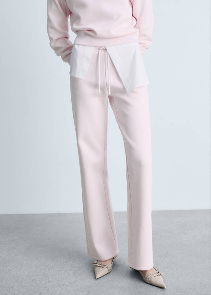 Cotton blend fabric. Wide-leg design. Long design. Elasticated waistband. Adjustable drawstring. No Fastening. Total look