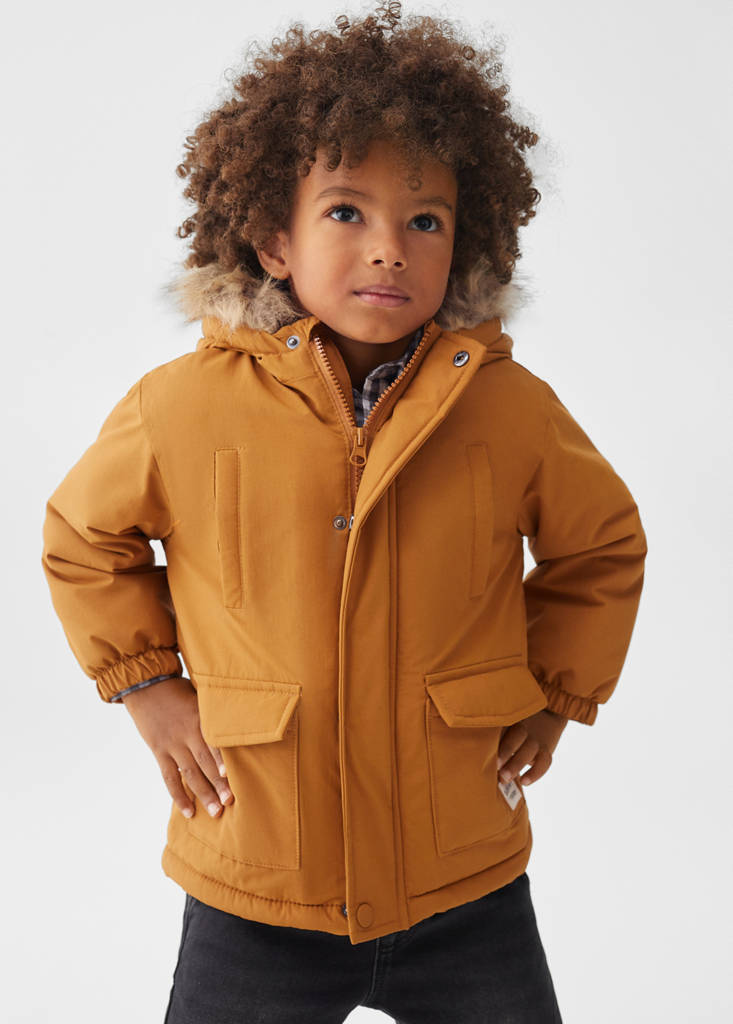 Collection Essentiels, matelassé, droit, coupe longue, intérieur moutonnée, capuche avec détail imitation fourrure, fermeture Éclair avec boutons, deux poches à rabat à l’avant, deux poches avant, manches longues.