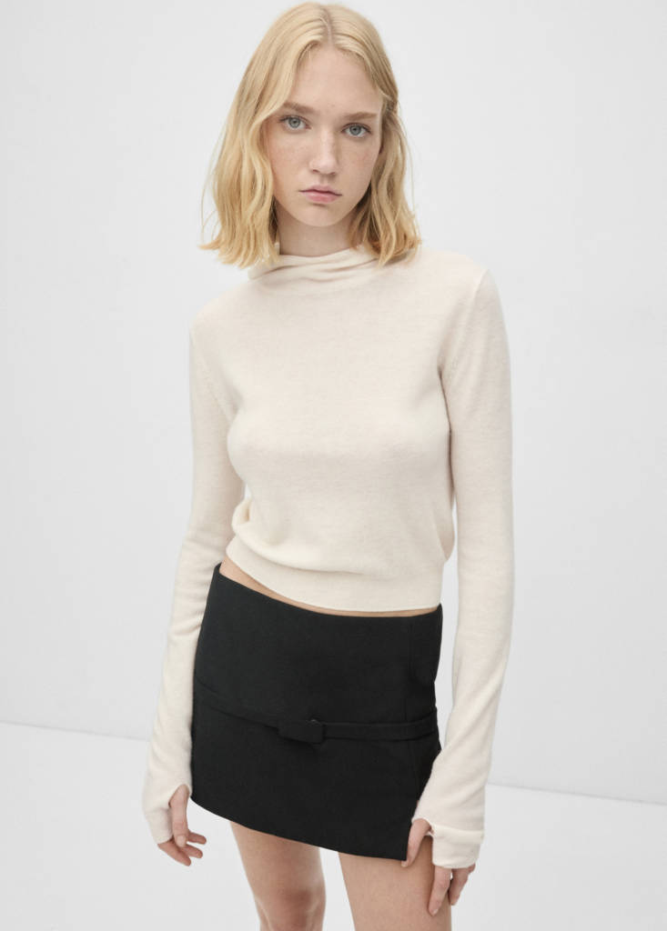 Coupe droite. Tissu en maille fine. Capuche. Passe-pouces. Collection Selection. Tissu 100 % laine. Manches longues fentes aux poignets. Col rond