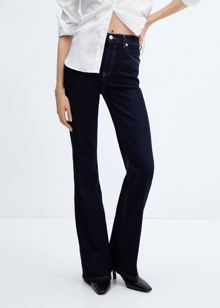 Tissu en coton de style jean. Flare. Design long. Taille mi-haute. Passants de ceinture. Cinq poches. Fermeture éclair et bouton. Longueur intérieure 89 cm. Extra-long